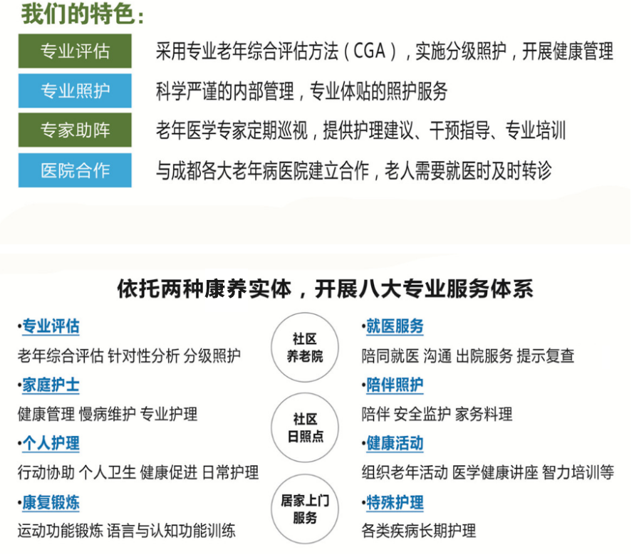 成都怡倍康養老服務有限公司是一家按照“康養結合”模式運營的專業化養老機構。